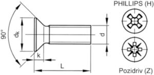 Countersunk head philips screw DIN 965 4.8 zinc plated M6x50