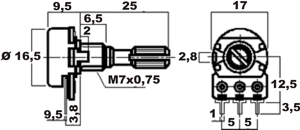 10K Potentiometer 15mm Shaft