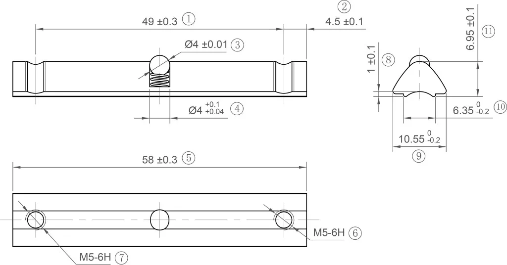 I6 T-slot nut 58x10,55x7 mm, M5 6mm groove