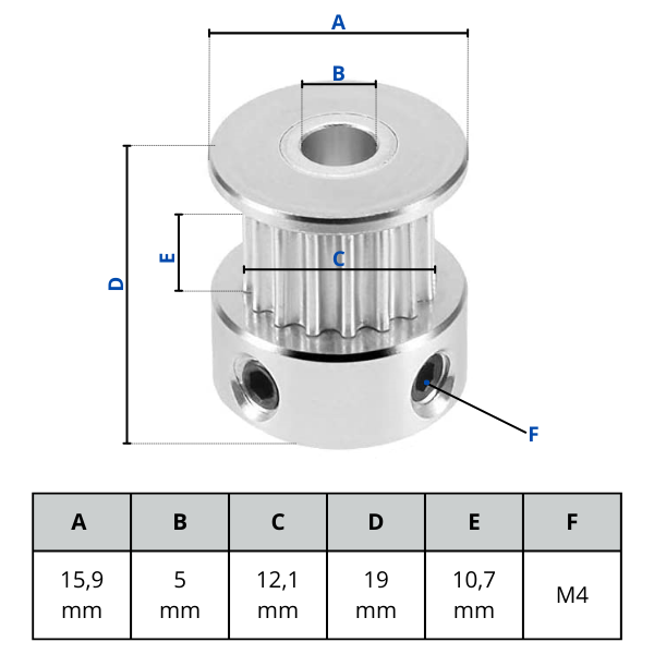 GT2-10mm 20 teeth timing pulley 5mm bore